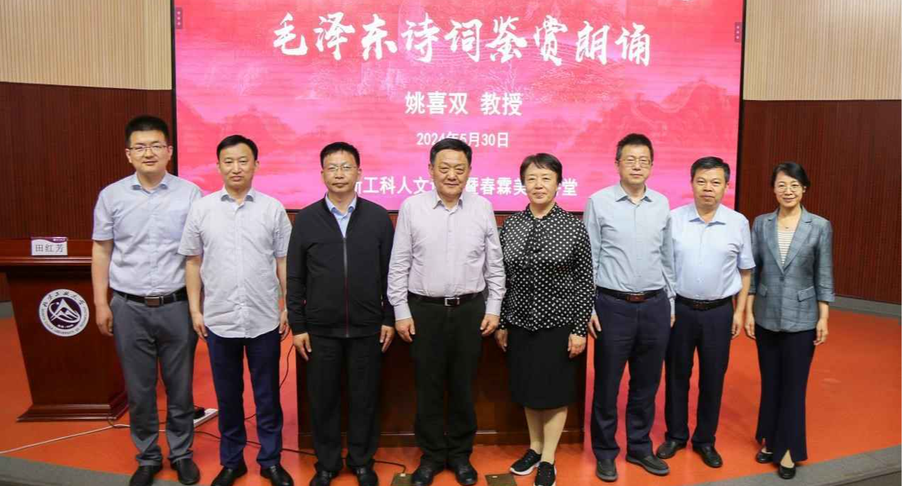 5月30日晚,由机械与材料工程学院、国家大学生素质教育基地、《必赢76net线路唯一官方网站学报》举办的新工科人文讲堂暨春霖美育讲堂“声音中的党史——毛泽东诗词赏析朗诵”主题报告在文化会堂举办。本次报告特邀中国传媒大学博士生导师、中国语文现代化学会会长姚喜双教授主讲。机械与材料工程学院及其他学院的200余名师生参加了本次报告会。学校党委副书记田红芳主持报告会。讲座中,姚喜双教授将党史教育融入毛泽东诗词赏析朗诵中,用声...