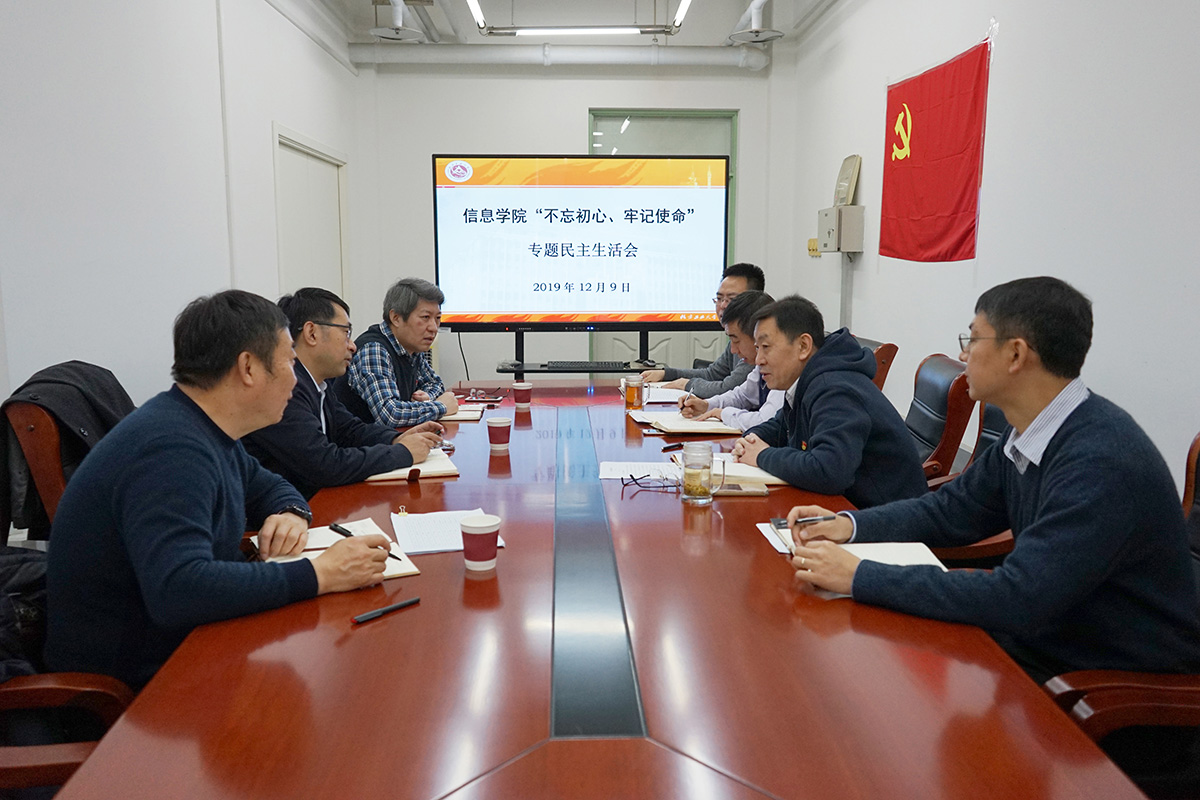 12月9日上午,信息学院在瀚学楼1021召开“不忘初心、牢记使命”专题民主生活会。柳长安副校长作为联系信息学院的校领导、学校纪委委员张建国、学校主题教育指导组成员武家申列席会议,会议由学院党委书记刘文楷主持。会前,按照学校《“不忘初心、牢记使命”专题民主生活会方案》的工作要求,班子成员原原本本学习领会习近平新时代中国特色社会主义思想,开展班子成员谈心谈话,通过召开系主任座谈会、青年教师座谈会、党支部书...