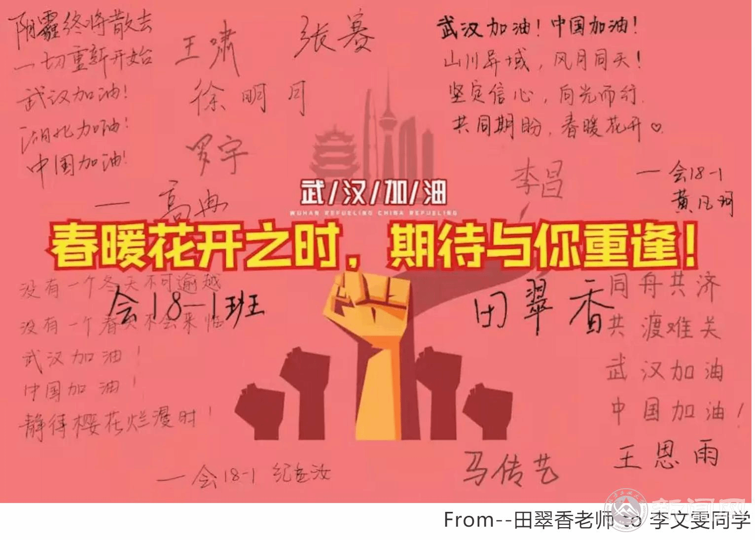 面对当下新冠肺炎疫情的严峻形势,为进一步帮助湖北的师生坚定信念、平稳度过疫情关键期,经济管理学院于2月13日,为身在湖北及湖北籍的师生们开展线上送祝福活动。当日,学院发布了《致身在湖北及湖北籍师生的一封信》,向身在湖北地区的13位师生传递学校和学院的关注、关心和关爱。信中从“心手相连战疫情”到“荆楚自古出豪杰”,传递出当前学院“心头最深的牵挂”,号召大家坚定信心、积极向上、听从指挥、攻克难关...