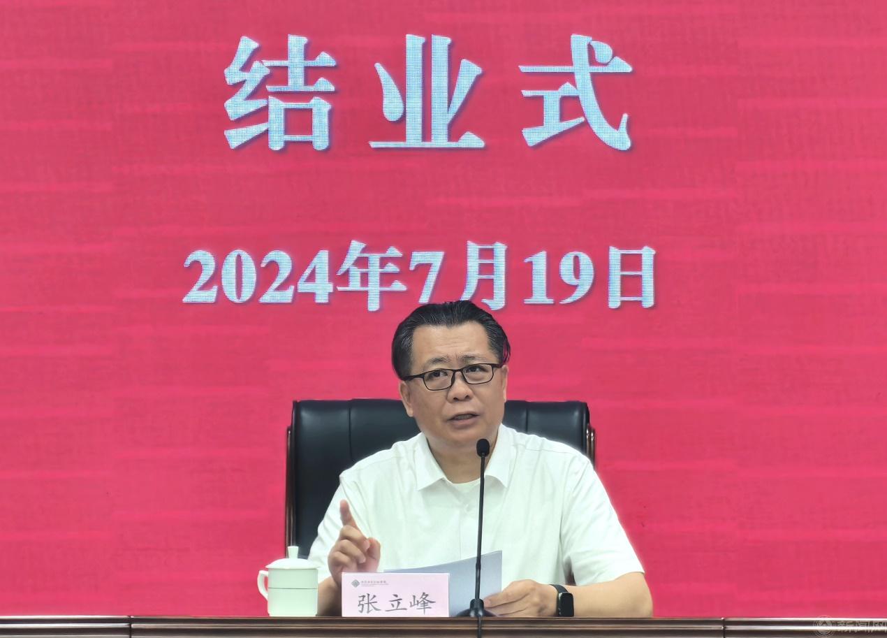 张立峰为学员代表颁发培训结业证书,并作总结讲话。他表示此次培训形式多样、内容丰富、安排紧凑、组织有力,取得了较好效果。他指出,此次培训正值党的二十届三中全会胜利召开,全体干部要认真学习贯彻三中全会精神,将学习成果转化为推动学校高质量内涵发展的内生动力。他强调,中层干部和骨干教师是样板建设的关键力量,要牢记习近平总书记提出的好干部标准,切实做到信念坚定、为民服务、勤政务实、敢于担当、清正廉洁。全体干部要进一步提高政治站位,不断加强理论学习,探索符合新时代要求、首都发展需求以及学校实际的高水平应用型大学发展道路;要进一步增强政治担当,持续深化“老工科”新内涵,建设“六有学院”,有力促进工作提质增效;要进一步夯实政治作为,深入思考高水平应用型大学建设内涵,主动谋划实施方案和具体举措,做推动落实的先锋队、排头兵,共同建设公正公平、努力拼搏的校园文化,以更加奋发有为的精神状态为学校事业发展做出新的更大贡献。