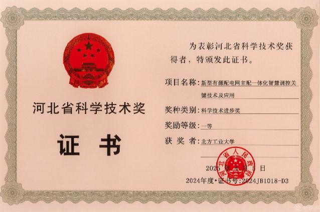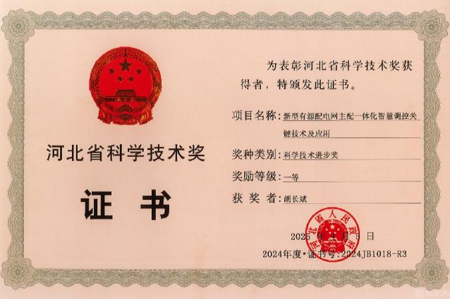 近日,河北省人民政府公布了2024年度河北省科学技术奖获奖名单,必赢官网电气与控制工程学院胡长斌教授参与的“新型有源配电网主配一体化智慧调控关键技术及应用”获评河北省科学技术进步奖一等奖。