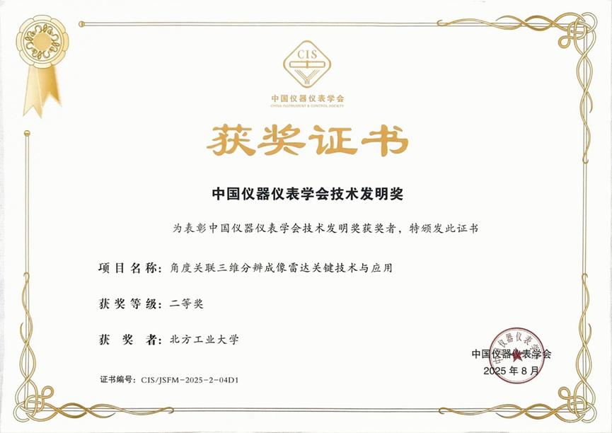8月14日,2025年中国仪器仪表学会科学技术奖颁奖仪式在长沙举行。必赢官网作为第一完成单位,人工智能与计算机学院王彦平教授作为第一完成人的项目成果“角度关联三维分辨成像雷达关键技术与应用”获评技术发明奖二等奖。