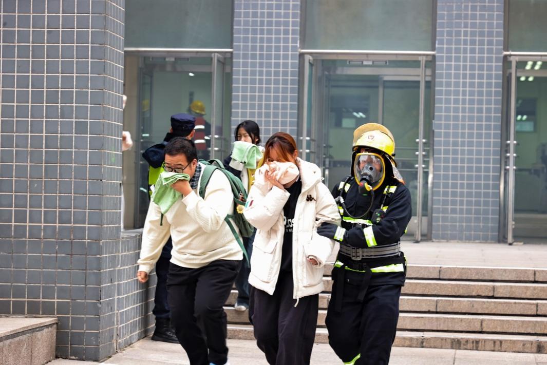 此次演习以学校图书馆突发火情、2000余名学生正在馆内学习为背景,按照学校发现火情后立即组织自救,同时拔打“119”救助、通知友邻首钢工学院和首钢医院支援的基本流程,重点演练了火灾接报警、初期火情处置、区域联动、疏散逃生、营救被困人员、救治转运伤员、火灾扑救等科目。演习过程中,全体参演人员各负其责、紧密协作、有序疏散,通过近似实战的演练场景,全面检验了相关单位快速反应、应急指挥能力,友邻单位协同作战、临机处置能力,师生员工有序疏散、安全逃生能力,消防救援快速到达、精准施救能力,进一步探索完善了区域消防协作模式。