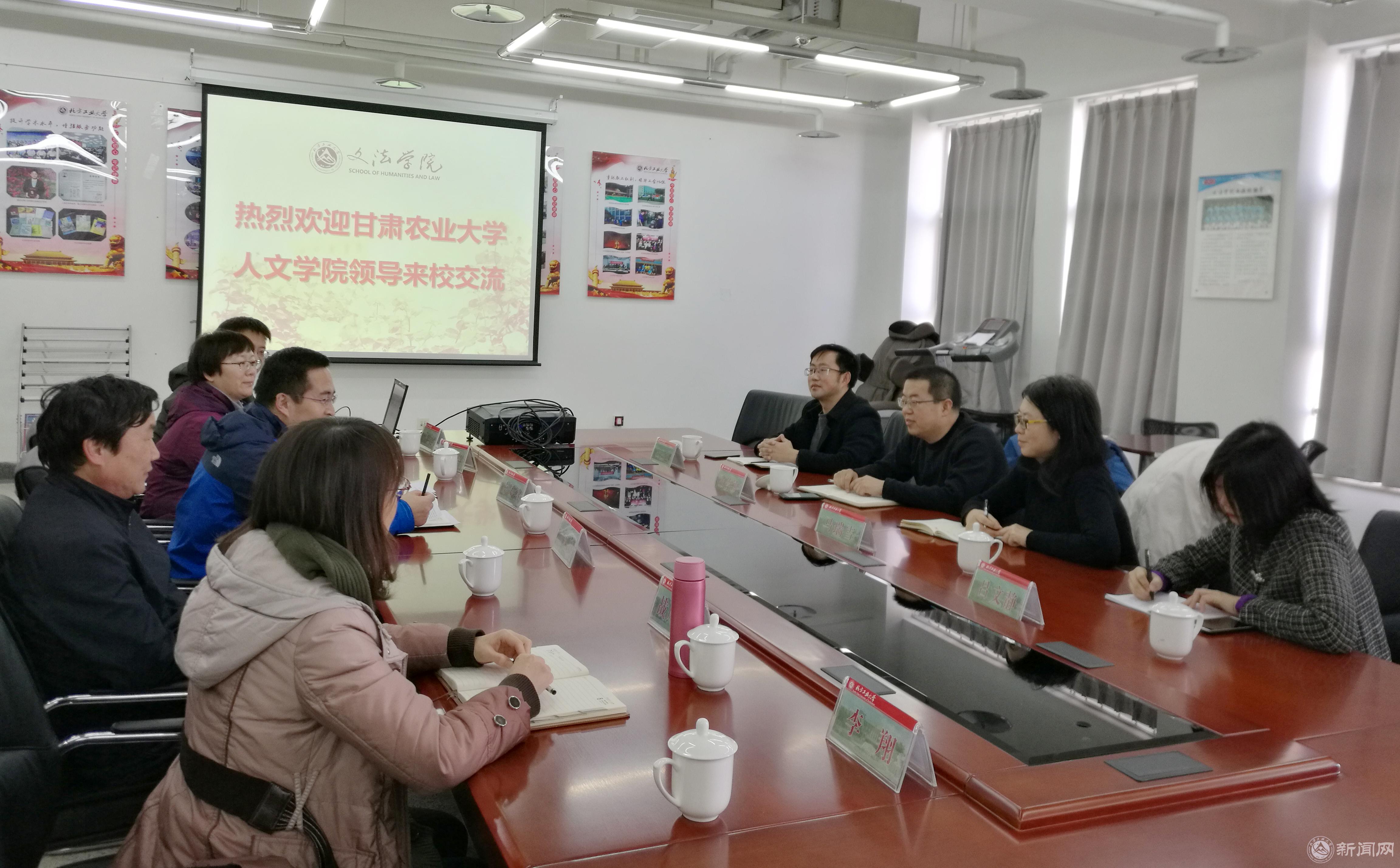 12月17日下午,甘肃农业大学人文学院英语系马瑞雪主任一行4人来必赢官网调研英语专业教学与大学英语教学改革工作。文法学院党委书记袁本文、副院长袁凤识、公共英语系主任高越、副主任战凤梅、英语系教师李翔及高黎老师参加了会谈。